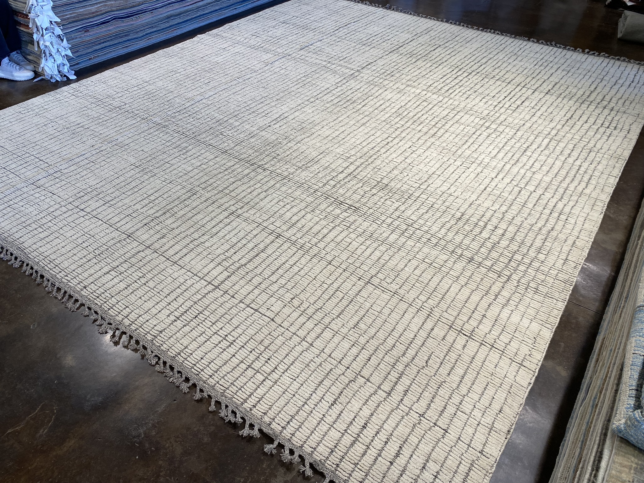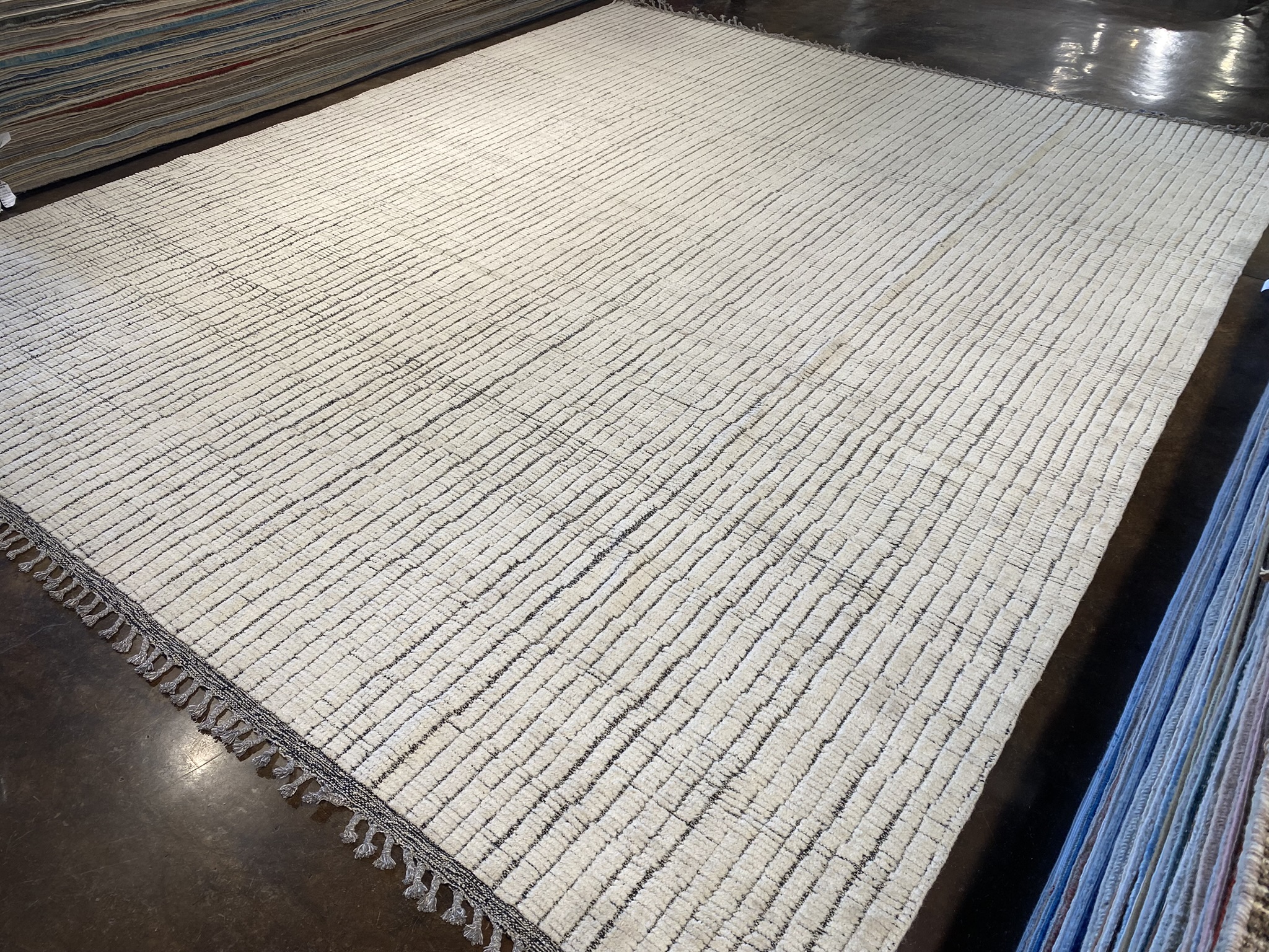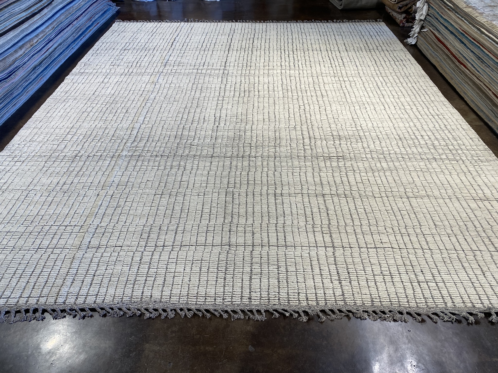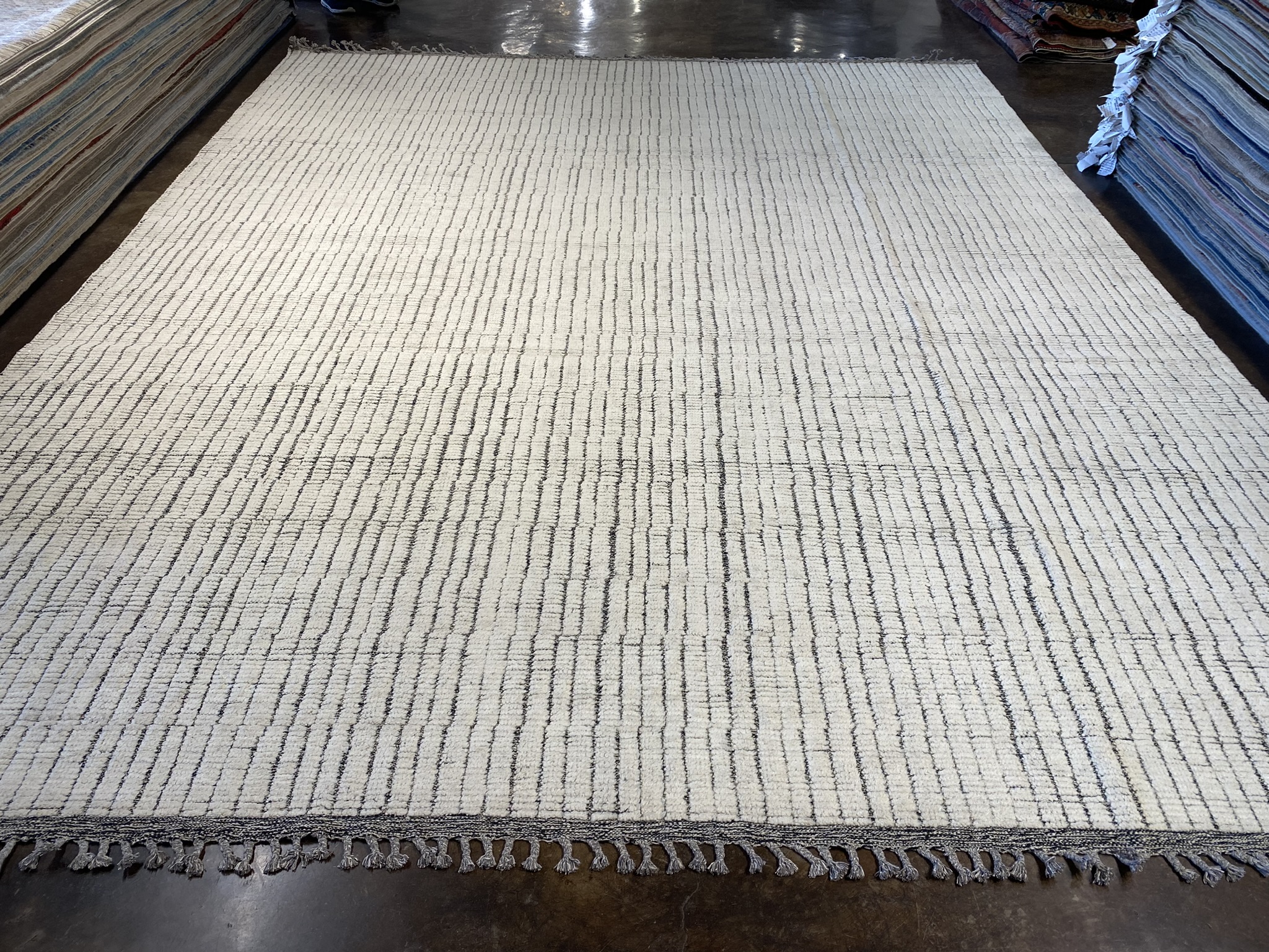 Introduce timeless sophistication to your space with this exquisite 11’10” x 14’7″ rug from the Himalaya Collection. Crafted with meticulous attention to detail by skilled artisans in Afghanistan, this oversized rug features a captivating ivory color palette that exudes a sense of elegance and serenity. The rug’s contemporary design showcases a minimalist and modern aesthetic, with subtle striations and a plush, textured surface that invites comfort and relaxation. The luxurious pile is handwoven using premium quality materials, ensuring durability and longevity. Measuring an impressive 142 inches in length and 175 inches in width, this expansive rug is perfect for anchoring large living spaces, dining areas, or master bedrooms. The neutral ivory hue effortlessly complements a wide range of decor styles, from traditional to contemporary, making it a versatile addition to any home. As a brand new item, this Himalaya Collection rug is ready to infuse your home with a touch of understated luxury. Experience the unparalleled craftsmanship and timeless beauty of this Afghan-made masterpiece, and elevate your interior design to new heights.