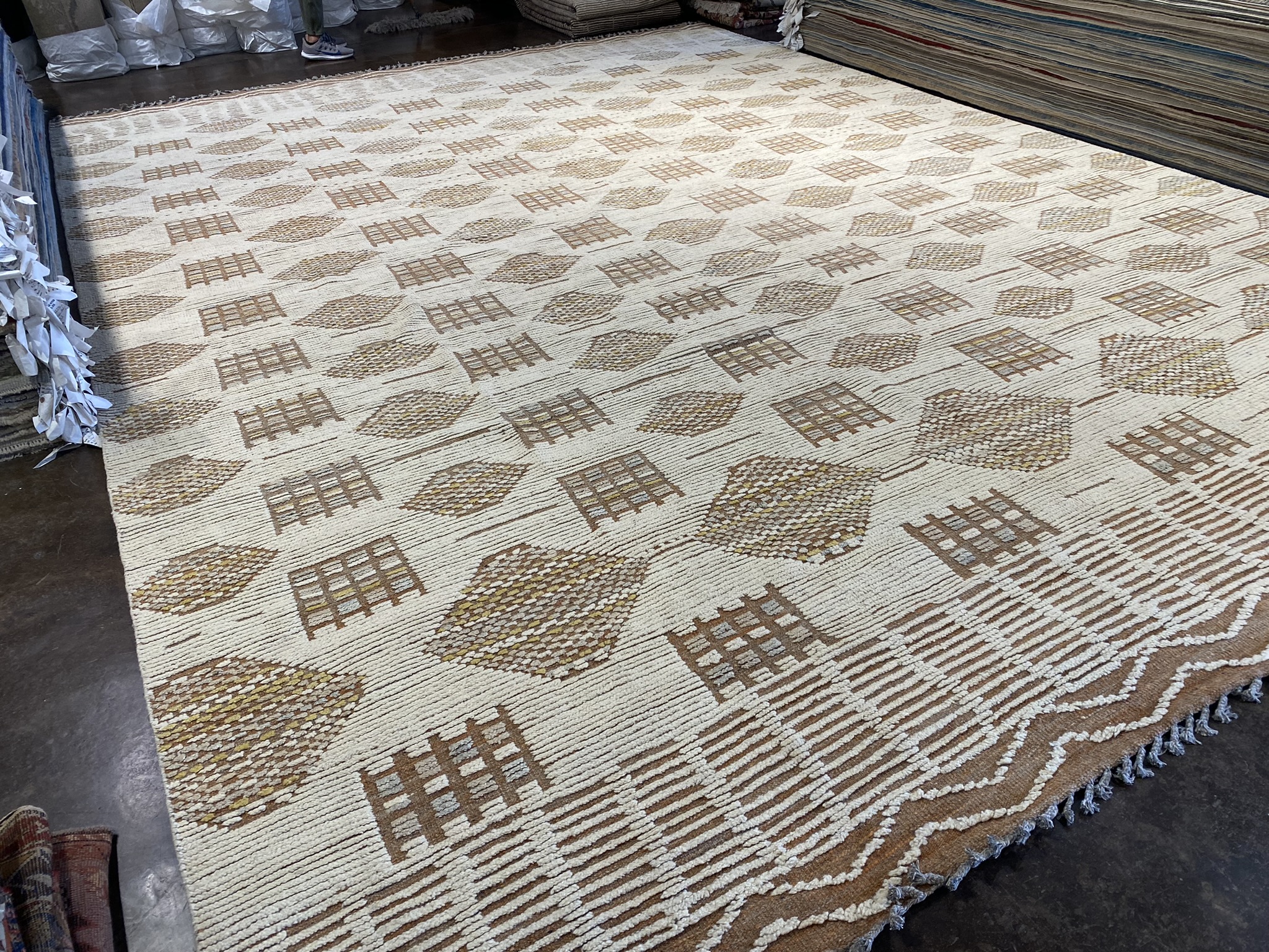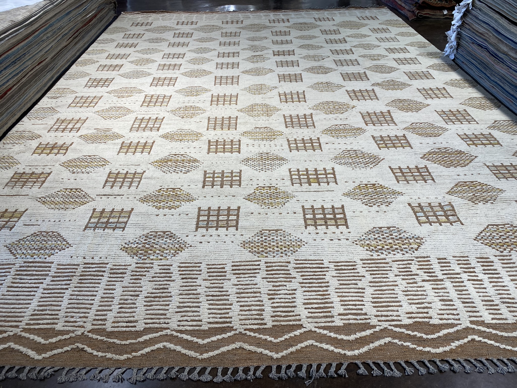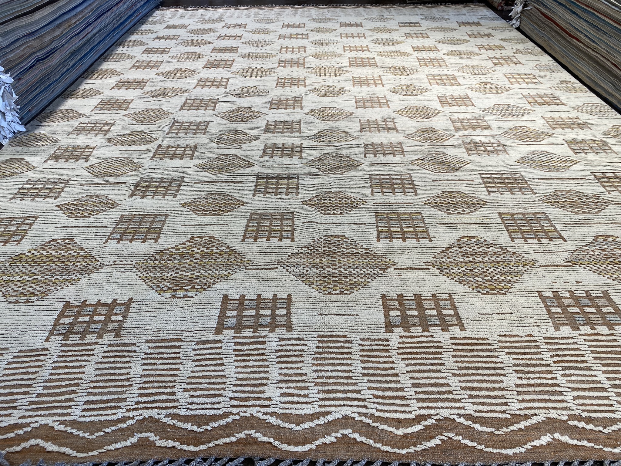 Introducing the stunning HIMALAYA COLLECTION rug, a breathtaking oversized piece measuring an impressive 12’9″ x 17’8″. This Afghan-made rug is a true work of art, showcasing a captivating blend of brown, camel, cream, and gray hues that create a harmonious and visually striking palette. Crafted with meticulous attention to detail, this rug features an eclectic yet contemporary design that effortlessly complements modern interior styles. The intricate pattern showcases a mesmerizing array of geometric shapes, including squares, rectangles, and diamonds, which are expertly woven to create a sense of depth and texture. The rug’s impressive size allows it to serve as a commanding focal point in any room, while its soft and plush surface invites comfort and relaxation. Whether gracing a spacious living room, dining area, or master bedroom, this HIMALAYA COLLECTION rug is sure to elevate the ambiance and sophistication of any space. As a brand new addition to our collection, this rug offers the perfect opportunity to invest in a timeless and luxurious piece that will endure for years to come. Don’t miss the chance to bring home this exceptional Afghan rug, a true embodiment of style, craftsmanship, and elegance.