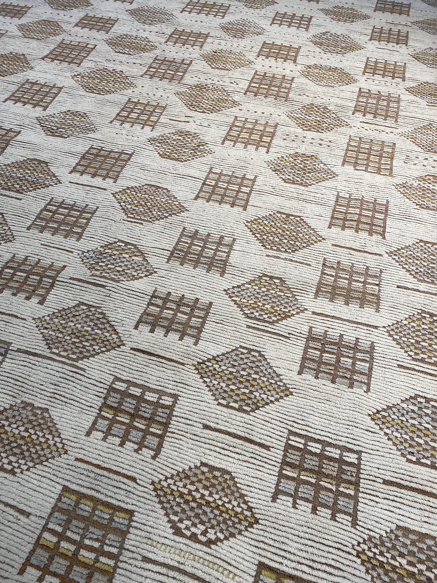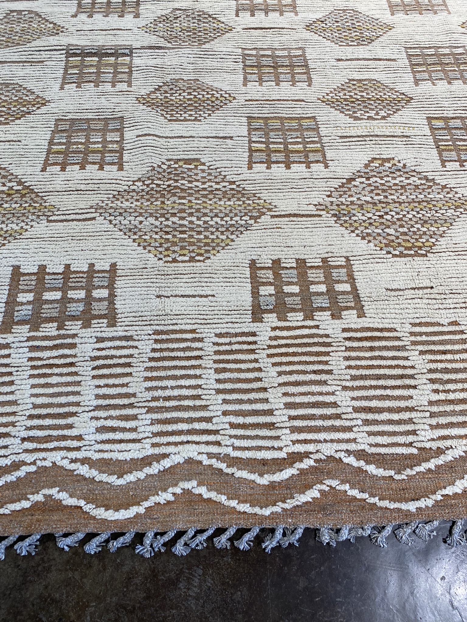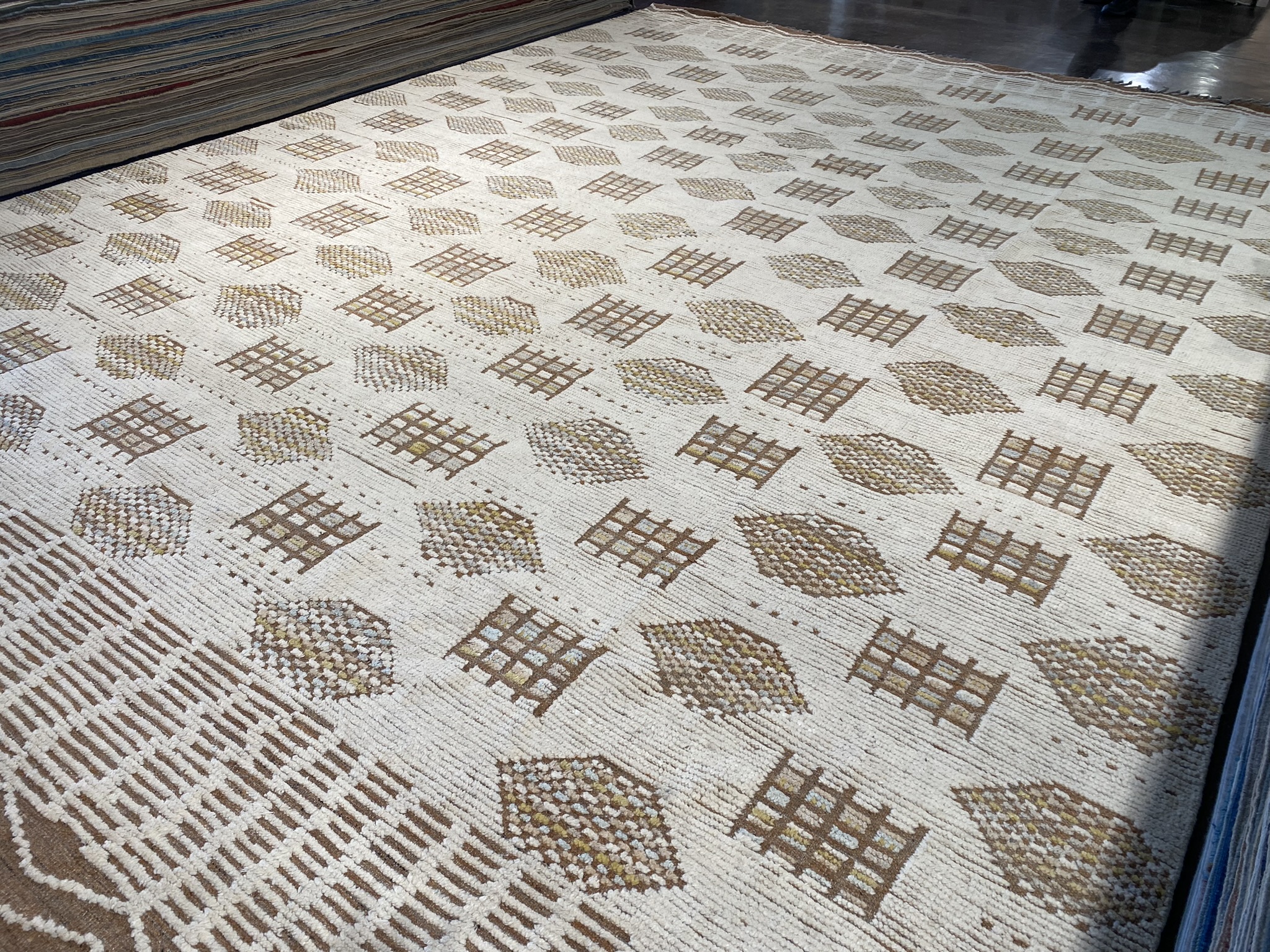 Introducing the stunning HIMALAYA COLLECTION rug, a breathtaking oversized piece measuring an impressive 12’9″ x 17’8″. This Afghan-made rug is a true work of art, showcasing a captivating blend of brown, camel, cream, and gray hues that create a harmonious and visually striking palette. Crafted with meticulous attention to detail, this rug features an eclectic yet contemporary design that effortlessly complements modern interior styles. The intricate pattern showcases a mesmerizing array of geometric shapes, including squares, rectangles, and diamonds, which are expertly woven to create a sense of depth and texture. The rug’s impressive size allows it to serve as a commanding focal point in any room, while its soft and plush surface invites comfort and relaxation. Whether gracing a spacious living room, dining area, or master bedroom, this HIMALAYA COLLECTION rug is sure to elevate the ambiance and sophistication of any space. As a brand new addition to our collection, this rug offers the perfect opportunity to invest in a timeless and luxurious piece that will endure for years to come. Don’t miss the chance to bring home this exceptional Afghan rug, a true embodiment of style, craftsmanship, and elegance.