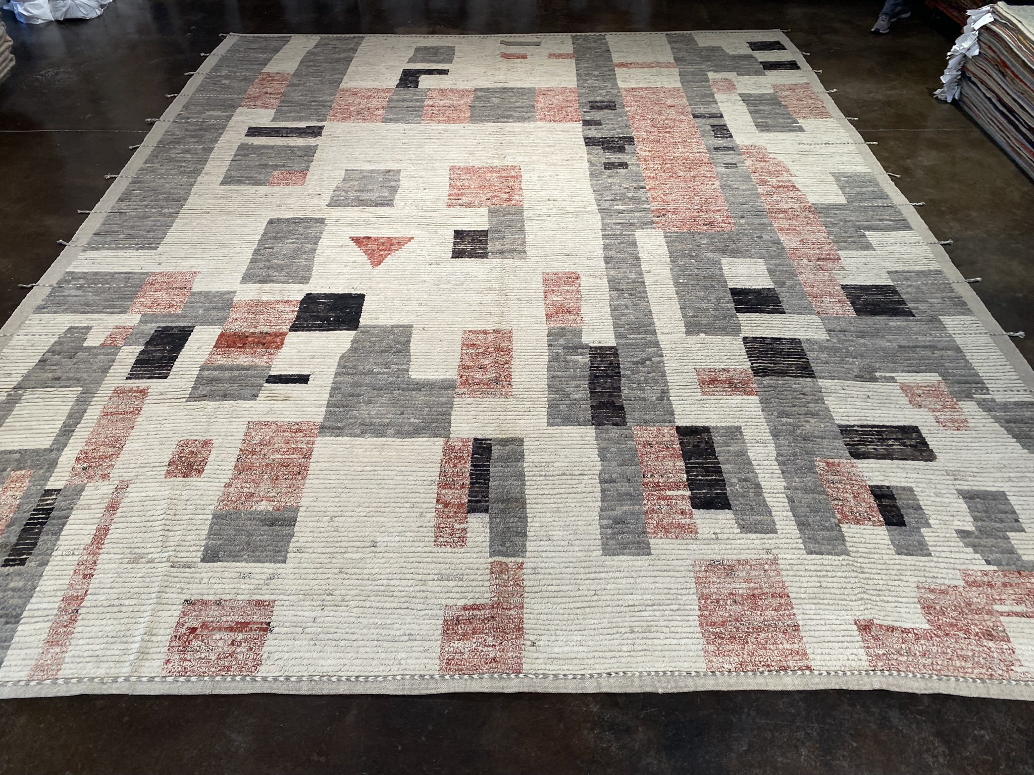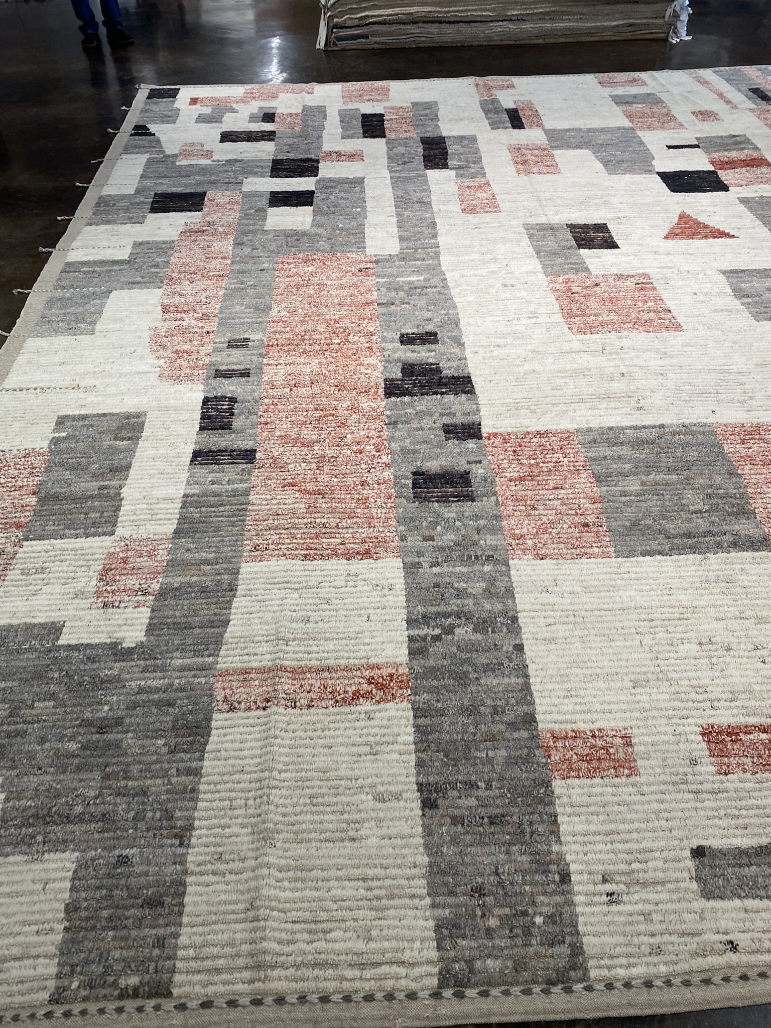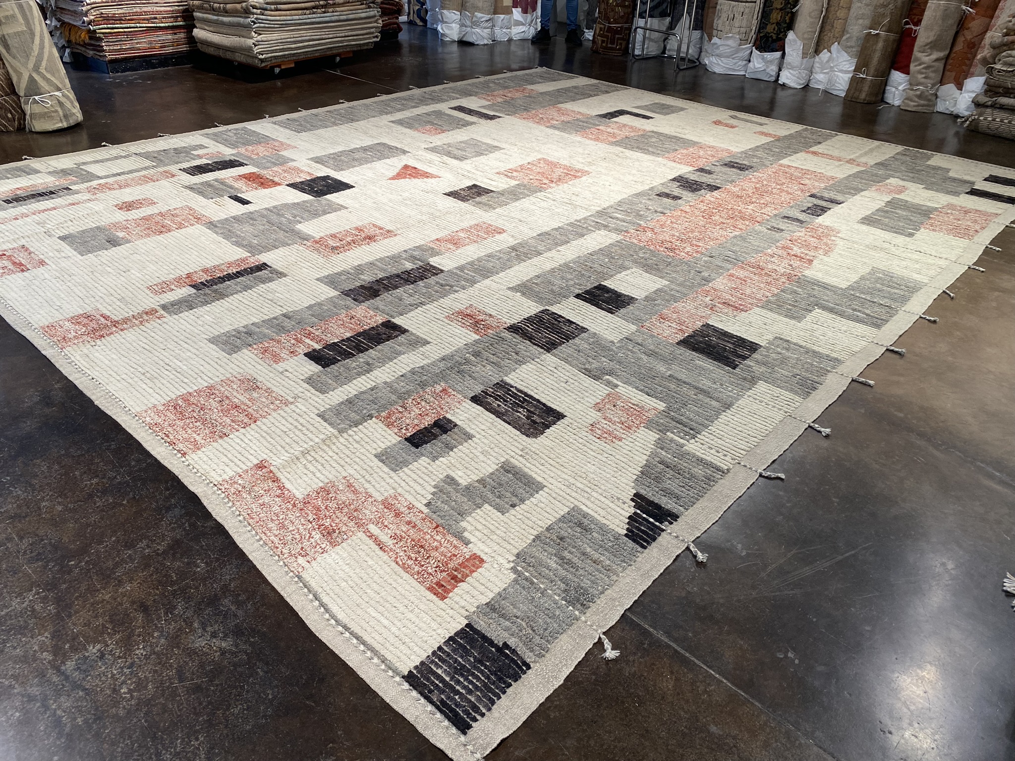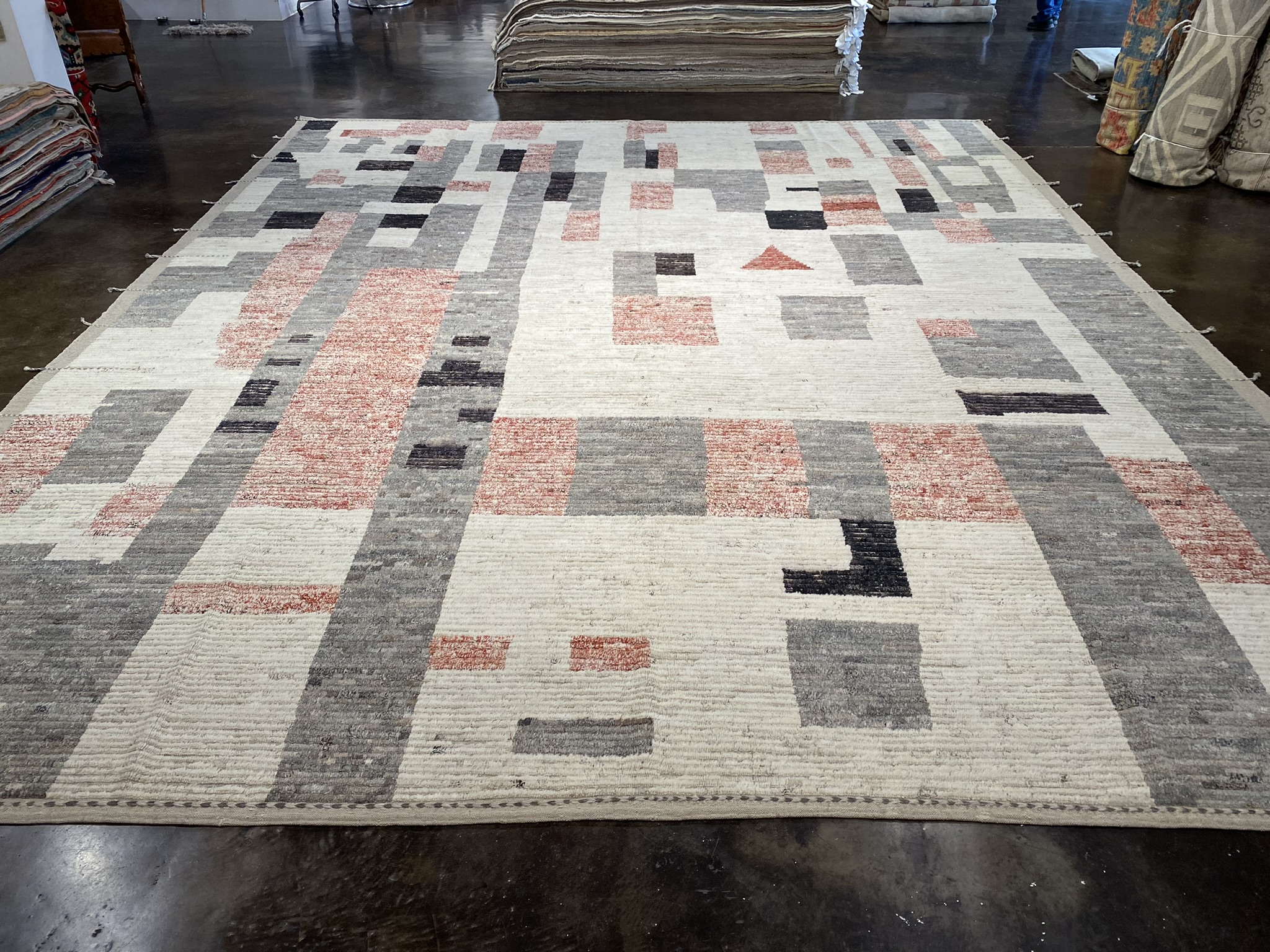 Introducing the stunning Mongolian Collection 14’7″ x 17’7″ area rug, a true masterpiece that perfectly blends contemporary style with traditional Afghan craftsmanship. This oversize rug, measuring an impressive 175 inches in length and 211 inches in width, is a testament to the artistry and skill of the weavers who created it. Crafted with an eclectic, modern design, this rug features a captivating geometric pattern in a striking palette of black, cream, and vibrant red hues. The intricate arrangement of rectangles and squares creates a mesmerizing visual rhythm that draws the eye and adds depth to the overall composition. The rug’s plush pile, made from high-quality materials, offers a luxurious texture that invites you to sink your toes into its softness. The attention to detail and expert craftsmanship ensure that this piece will withstand the test of time, maintaining its beauty and durability for years to come. Whether you’re looking to make a bold statement in your living room, dining area, or bedroom, this Mongolian Collection rug is the perfect choice. Its generous size allows it to anchor large spaces, while its striking design adds a touch of sophistication and character to any interior. Embrace the timeless elegance and unparalleled quality of this Afghan-made masterpiece, and elevate your home decor to new heights with the Mongolian Collection 14’7″ x 17’7″ area rug.
